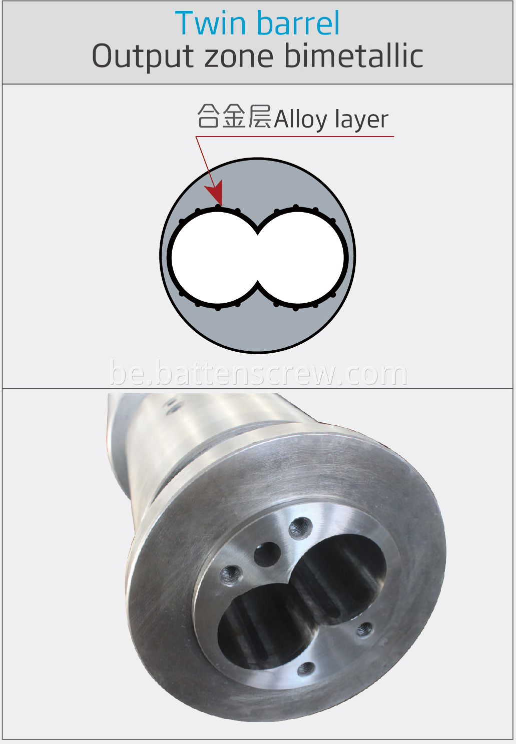 Лат гэта месца ў "Кітайскім шрубавым бочку родным горадзе", дзе 30 гадоў гісторыя. Мы эксперты па відах дызайну шрубы і бочкі. Мы разумеем патрэбы вашага бізнесу і распрацавалі свае прадукты: ад шрубы і бочкі з падшыпнікамі для ін'екцыйнай машыны, каб павысіць прадукцыйнасць вашых палімерных працэсаў.