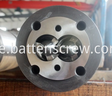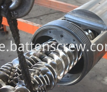 Process:Advanced nitriding & bimetallic process Hardness After Hardening & Tempering:HB280-320 Nitrided Hardness:HV900-1000 Nitrided Case Depth:0.45-0.8mm Nitrided Brittleness:Less than Grade 2 Surface Roughness:Ra 0.4 Screw Straightness:0.015mm Alloy Hardness:HRC 50-65 Alloy Depth:0.8-2.0mm |