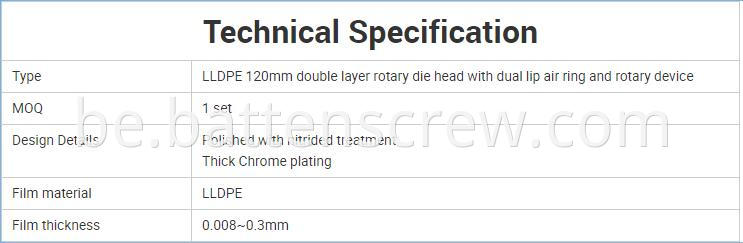 Двайны пласта паваротнай галавы для LLDPE 120 мм